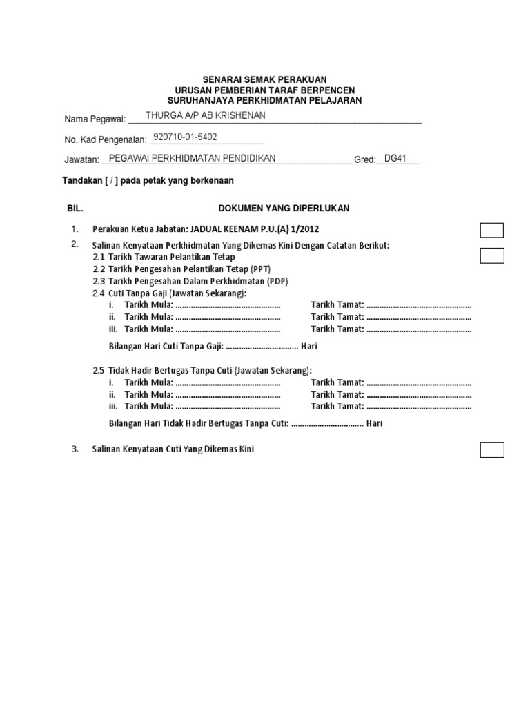 Senarai Semak Perakuan Urusan Pemberian Taraf Berpencen Pdf