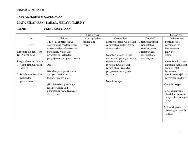 Contoh Jadual Penentu Kandungan Bahasa Melayu Tahun 5. Murid dikehendaki membuat refleksi sepanjang pelaksanaan projek. Menentukan aras kemahiran sama ada aras kefahaman pengetahuan aplikasi analisis sintesis atau penilaian.