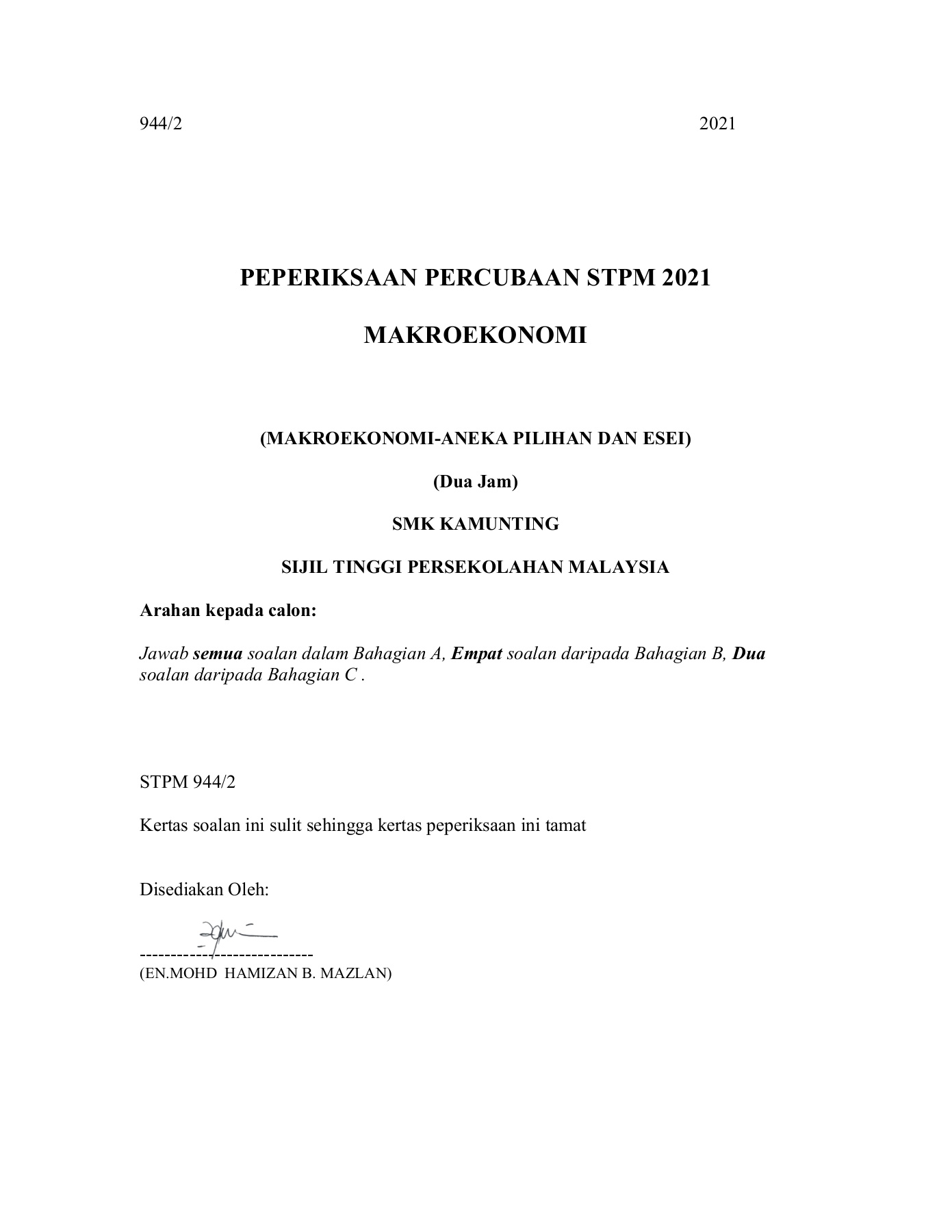 1 STPMJ1 ARAHAN AMARAN DAN PERINGATAN KEPADA CALON ARAHAN AM Calon Peringatan Kepada Calon ini ke dalam dewanbilik peperiksaan. Soalan-soalan telah disusun sesuai dengan topik yang terkandung dalam buku teks dan diikuti dengan penilaian yang berorientasikan. Berikut dikongsikan jadual peperiksaan STPM 2021 2022 yang meliputi jadual STPM Semester 2 2021 Semester 3 2021 Ulangan Semester 1 2021 dan Ulangan Semester 2 2021.